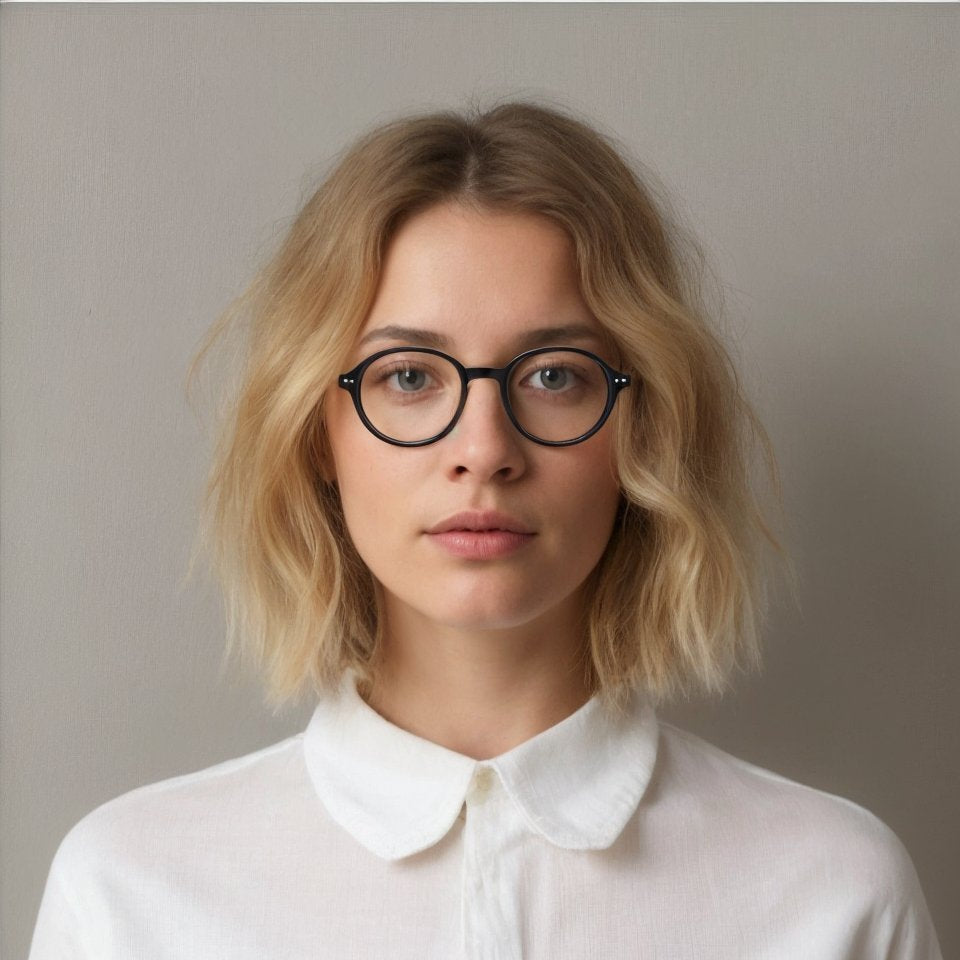 A light, neat, round eyeglass frame with a classic keyhole bridge