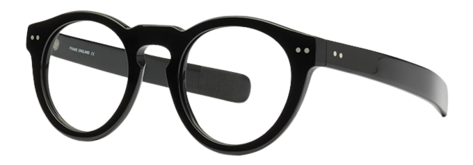 One of the giants of eyewear design this frame closely embraces the eye socket contour. It has the classic keyhole bridge and straight ‘spatula’ sides that create support by side pressure as opposed to the ‘hockey end side’ that hooks round the ears. Giant steps have been taken here to ensure the keyhole bridge is wide enough to fit a wide range of face shapes.