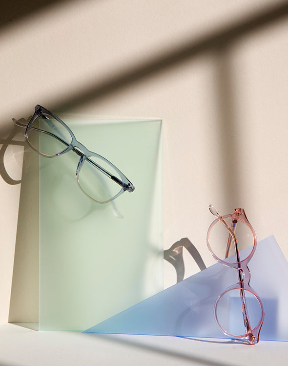 We combine traditional dyeing techniques and new tinting processes to create light shift of colour on both shiny and matt Clear Crystal frames.