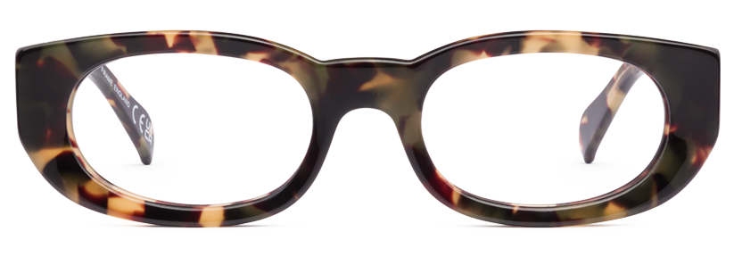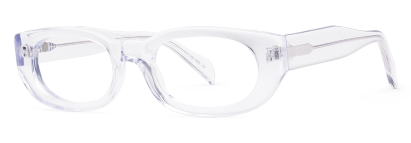 This is a medium thickness rectangular frame with an oval eye shape and wide sides.  Tjader is a heaver version of the thin plastic design of the 1950s NHS glasses.
